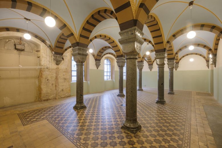 Sloupový sál – tvořivá zóna plná workshopů, jako je intuitivní malování, výroba kolárků, aromaterapie a další aktivity podporující kreativitu a sebevyjádření.