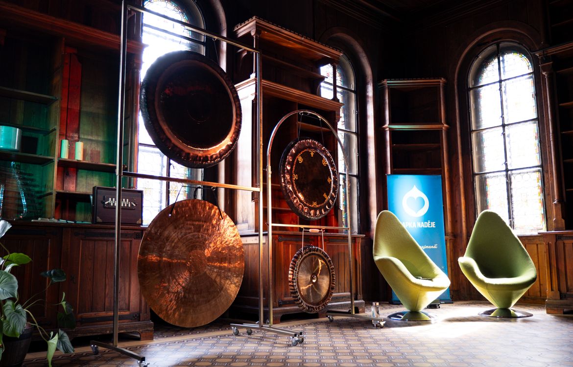 Kostel – jedinečný prostor pro duchovní koncerty a gongové ceremonie, kde hudba a vibrace vytvářejí hluboký prožitek.