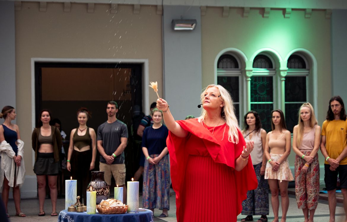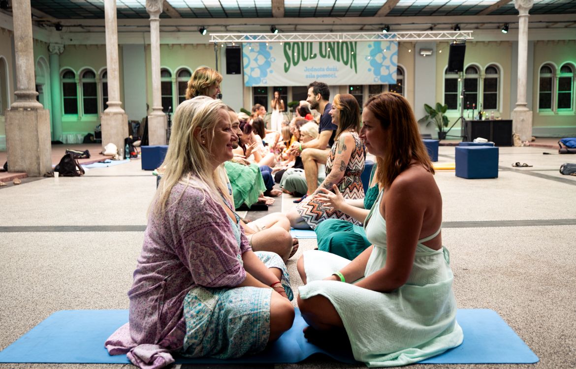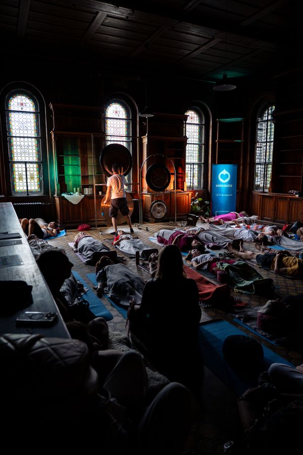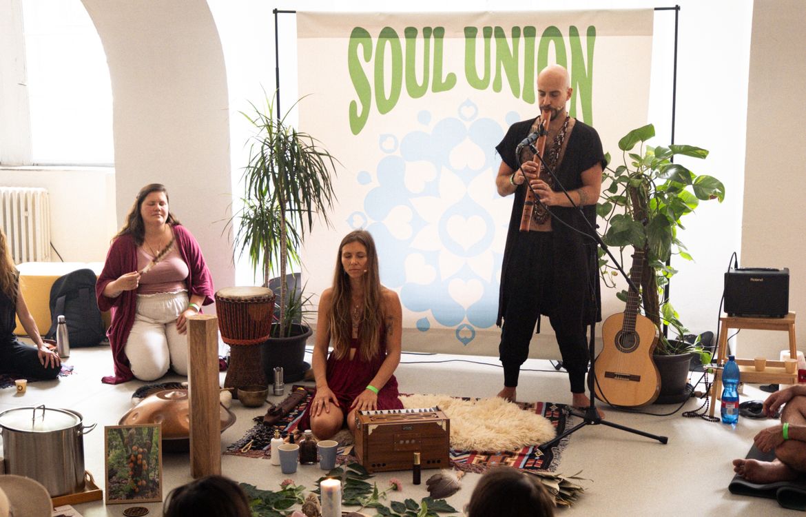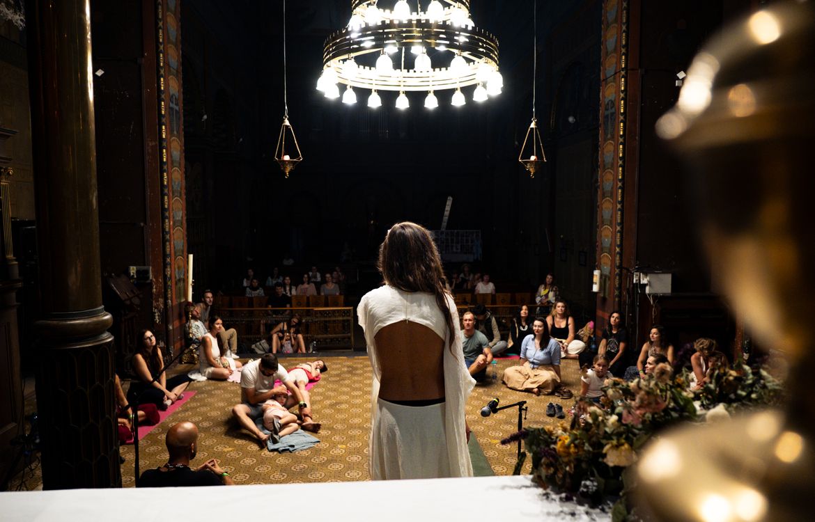 V Klenbovém sále jste mohli prožít vedenou meditaci v podání Ester Kozlovské, přední české facilitátorky transformačního dechu a zakladatelky značky Breathwork meditace. K večeru v tomto sále vystoupil také Ctirad Macháně se sólovou hrou na handpan, v Rajské zahradě zase kapela Vlčí jáma, která svými pohanskými písněmi oslavila přírodu a tradice. V kostele pak zazněly mantry v podání MAAR a následovala jedinečná ceremonie na sedm gongů, které společně rozezněli Hana Vítková z Vysokého Mýta a Dylan z Velké Británie.